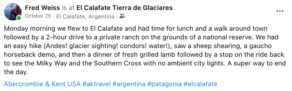 Patagonia/Rapa Nui – Day Four Posted byFred WeissDecember 31, 2022December 29, 2022Posted inPatagonia/Rapa Nui (Easter Island) - Oct 2022Tags:Abercrombie&Kent, Argentina, el calafate, Patagonia, travel blog Share this: Click to share on X (Opens in new window) X Click to share on Facebook (Opens in new window) Facebook Click to share on Threads (Opens in new window) Threads Click to share on Bluesky (Opens in new window) Bluesky Like Loading... Related Published by Fred Weiss 7 continents/64 countries & territories/49 states. Family history. Film/vintage film posters. Dead Head. Baseball. Sometimes I take pictures. View more posts