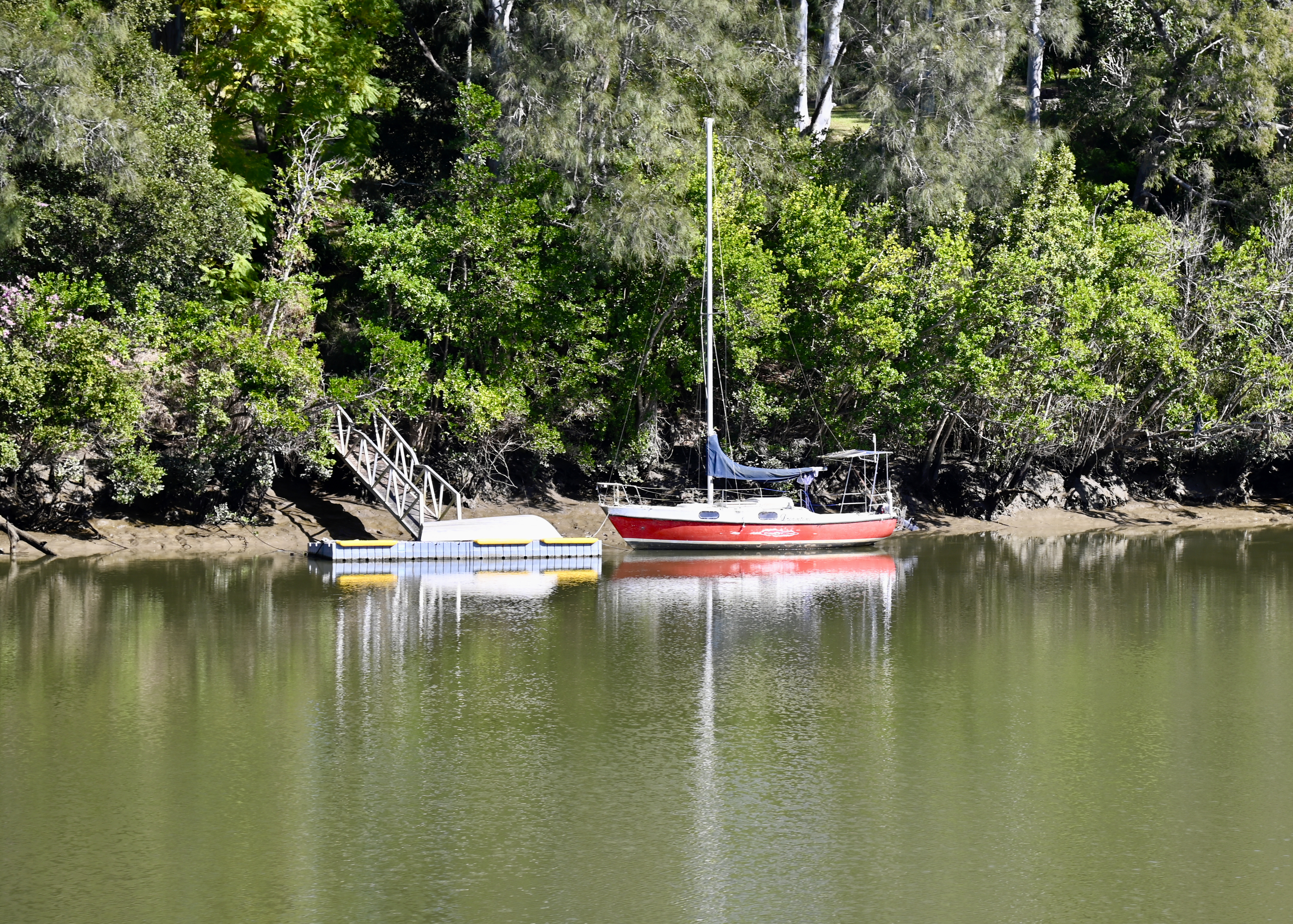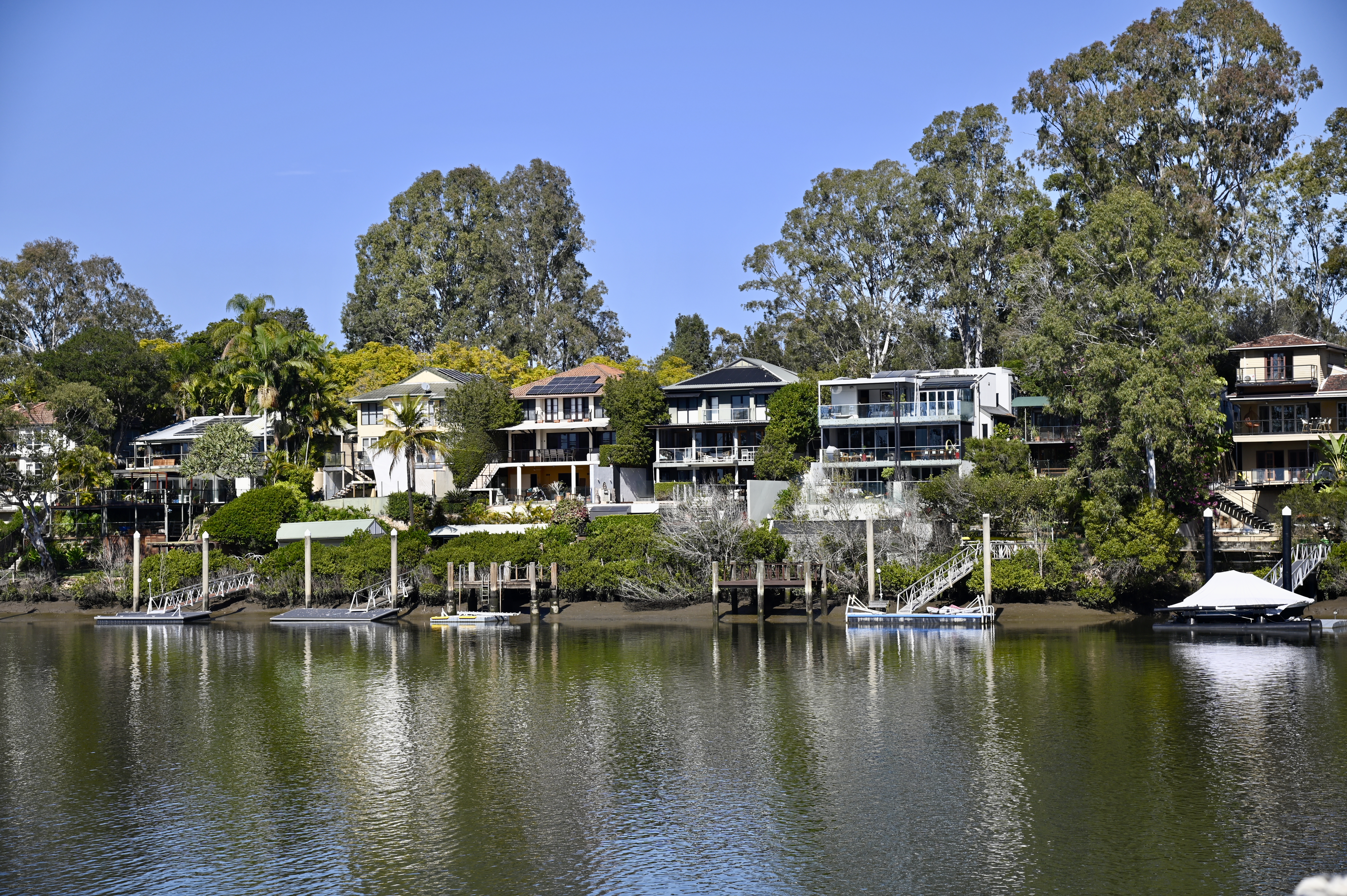 Anyway – it was another gorgeous day here in Brisbane with only partly cloudy skies and temps in the high-60-‘s and low-70’s again, so it was a glorious day for a river cruise. Twisting and turning, we edged out of central business district into the western and southern suburbs, past beautiful homes that lined the river, as well as The University of Queensland, some apartment buildings nearby, and parkland. Brisbane has suffered its share of devastating floods from the river, the most recent of which was in 2022, resulting in more than 23,000 homes being inundated and with power outages impacting over 51,000 homes. There’s still some evidence of that flood along the path we took.