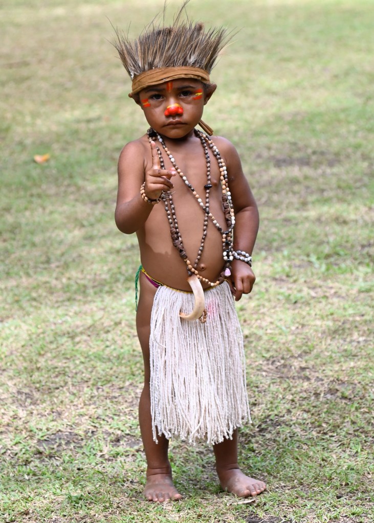 Our time over the next few days will be taken up by excursions to villages around this region and the other regions we visit.  The wide variety of tribes and traditions and cultures will give us the chance for lots of interaction with locals.  The tribes we saw on day five, and I suspect on other days as well, sit in a place between the modern world and traditional culture.  Apparently, most of the country is Catholic (though we say many churches of a wide-variety of denominations – Baptists, Evangelicals, Seventh-Day Adventists, among others) and that religion is blended with long-held traditions.  The villagers we saw yesterday were a mix of clothing – western blended with tradition; for the performances we saw, it was all traditional clothing.  Those we saw on day five live in small communities in the jungle – houses mostly built of trunks of trees bound together – but we saw a flushing toilet and a solar panel as well.