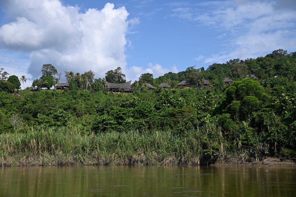 The boat left us at another muddy bank, where a small pick-up truck that had seats installed in its rear bed, picked us up and drove us up the ridge to the entrance to the Lodge. Comprised of a main building that had a lounge area filled with local art, a bar, a balcony overlooking the river, and made completely of wood, the grounds also had several separate buildings, each comprised of two guest rooms.