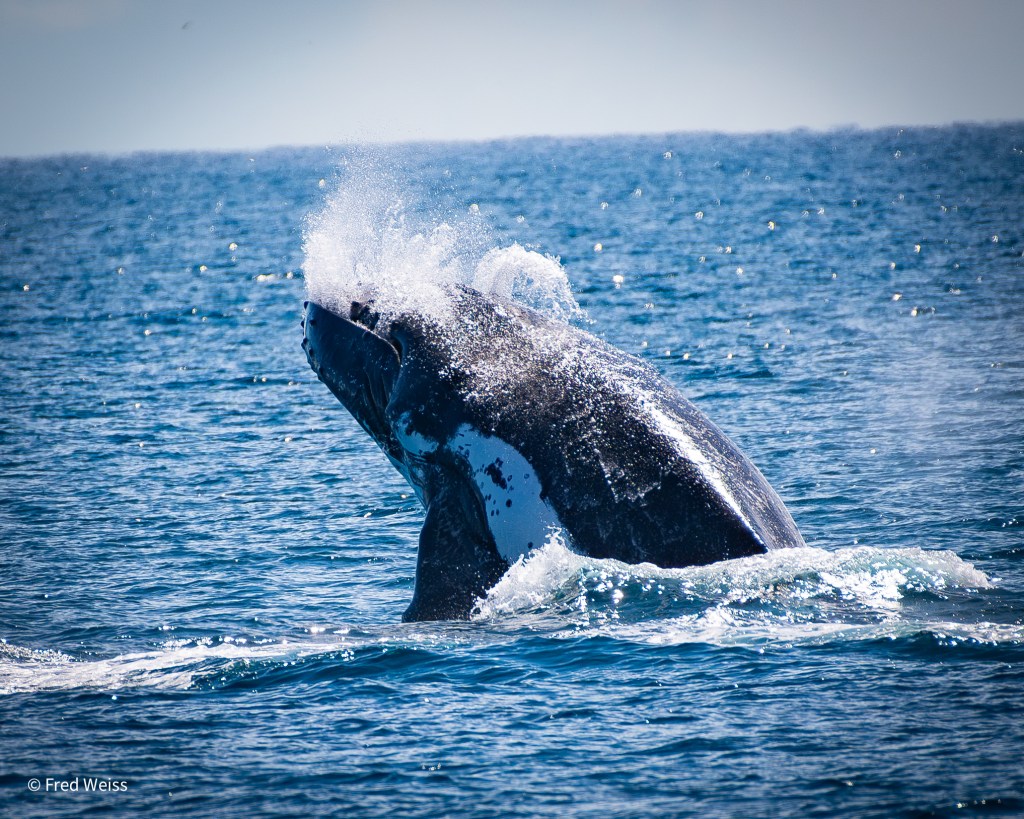 And apparently that is prime whale-watching territory. Once we arrived there, we had a spectacular two hours of humpback whales, with three or four pods appearing off all sides of our boat, one or two whales sometimes swimming right in front of the bow of the boat or swimming off the side of the boat. There was breaching in the distance, tail and fin slapping, and we also were treated to a group of eagle rays and two pods of dolphins as we cruised back into Redcliffe.