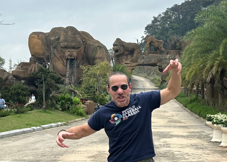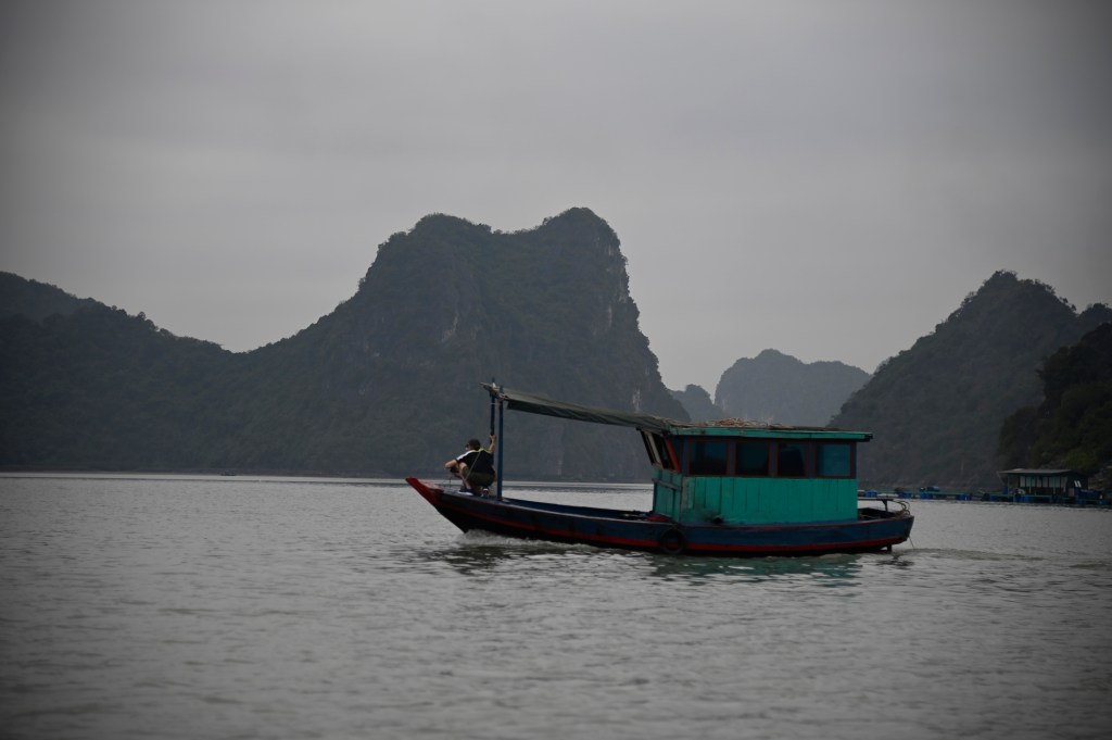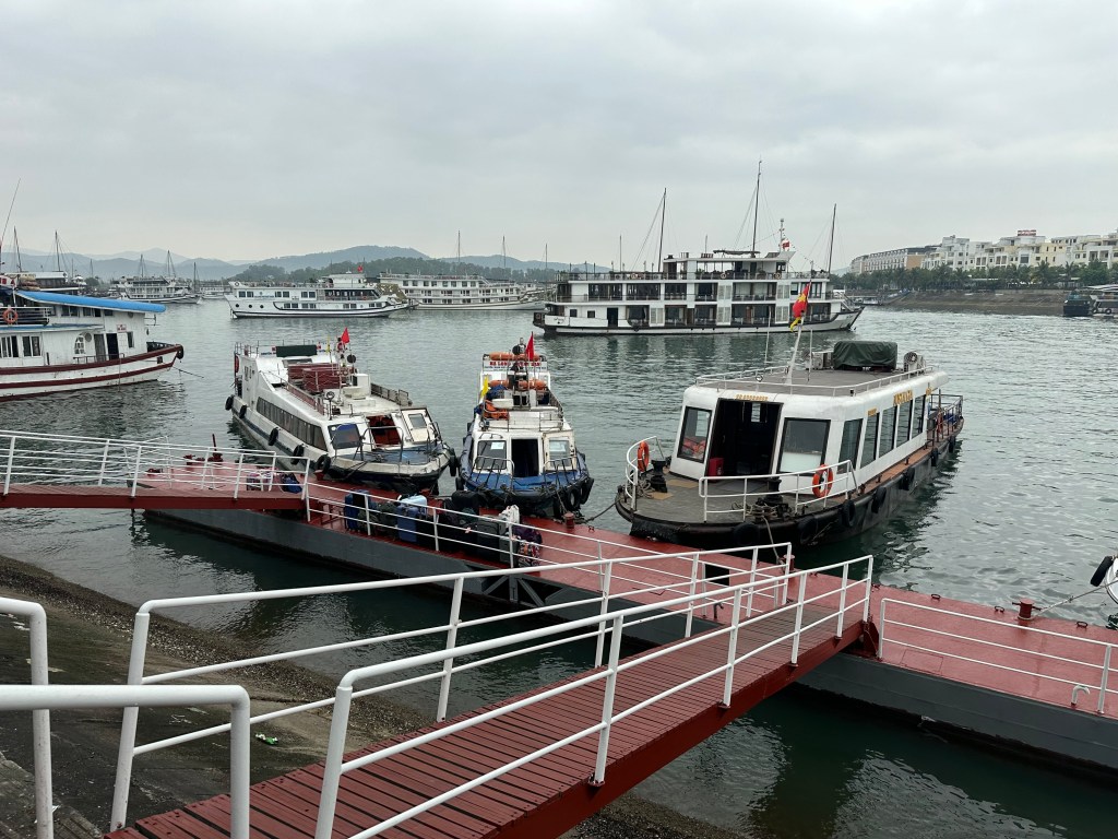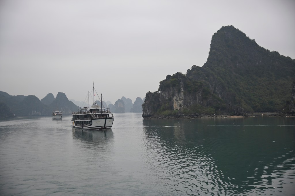 We started out around 8:30 a.m. on a two-hour drive east of Hanoi to Ha Long Bay, a UNESCO World Heritage Site that sits in the northern part of the Gulf of Tonkin. The Bay is made up of over 1,900 islands, jungle-covered limestone formations – named karsts – that, in some cases, appear to rise straight out of the water. These are the same formations I’d seen in Ninh Binh on my first day, with the difference being that this is the sea and that was an enclosed river valley where rice was farmed. Parts of the film “Kong: Skull Island” were filmed in both places and now, as we approached the pier where we’d be picking up our boat for an overnight stay, we passed by a relatively new Kong-based theme park. Unfortunately, we had grey overcast skies the whole time we were on Ha Long Bay.