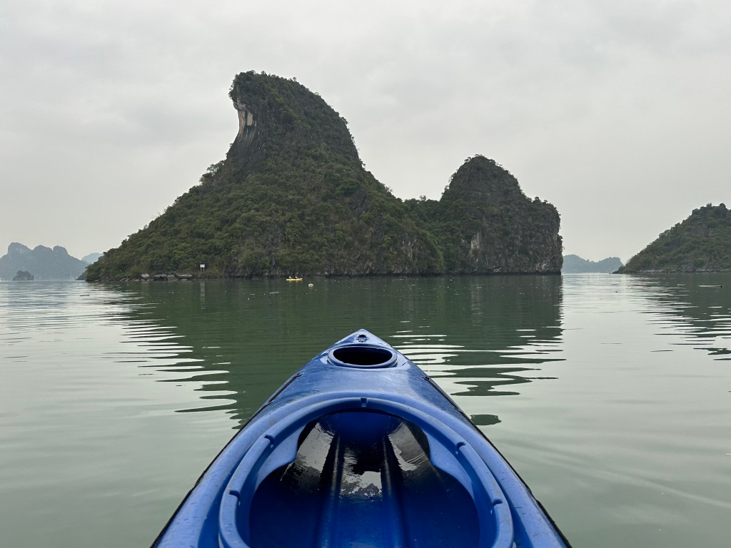 On day four a few of us awoke early for 6:15 a.m. tai chi on the sundeck, followed by breakfast (when I had a chance to taste my first “egg coffee” – a Vietnamese speciality that tasted like a cappuccino) and then a chance to kayak in the Bay. That was tranquil and chill, with the water being glassy and still, and we were able to get in close to the base of the karsts; it was all good despite the occasional presence – really the crime – of the floating garbage. With time to quietly reflect, I couldn’t help but think of the war and the devastation it brought to these places and these people. Here I was on a northern bay of the Gulf of Tonkin, where the incident in August 1964 served as an impetus for greater US involvement in the Vietnam War.