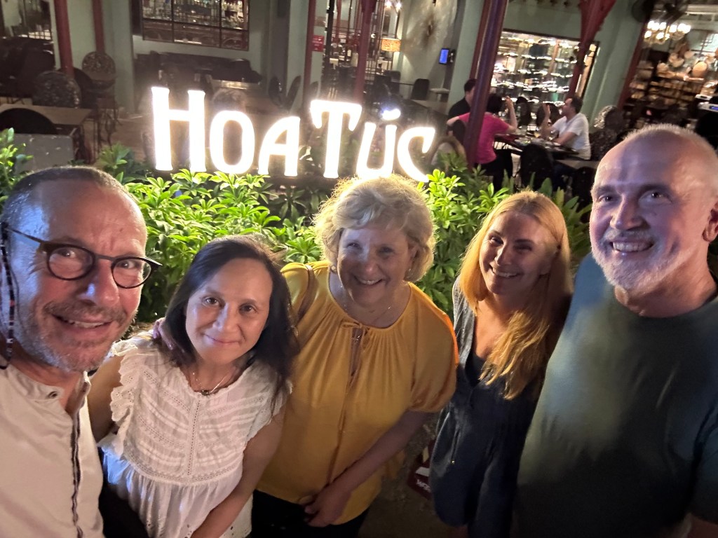 That kayak ride was a peaceful way to end our visit to the Bay. The rest of the day was spent in transit – first returning on the boat to a nearby pier, then taking about an hour drive to Hai Phong (the third largest city in Vietnam, with about 3m people), followed by a two-hour flight to Saigon, where we’ll spend the next three nights. Dinner out with some new and old friends tonight at a great restaurant within walking distance of the hotel, but more on Saigon to come.