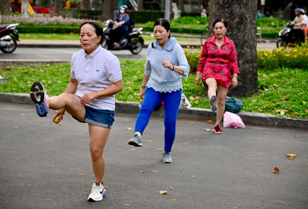 Our ride took us to a local park, where we saw people exercising – running, stretching, doing Tai Chi, dancing – and people just relaxing and having coffee while it was still – at around 85 degrees – relatively cool. We stopped at a cafe in the park for some Vietnamese coffee – traditionally made with condensed milk, making it a sweet cool treat at that hour.