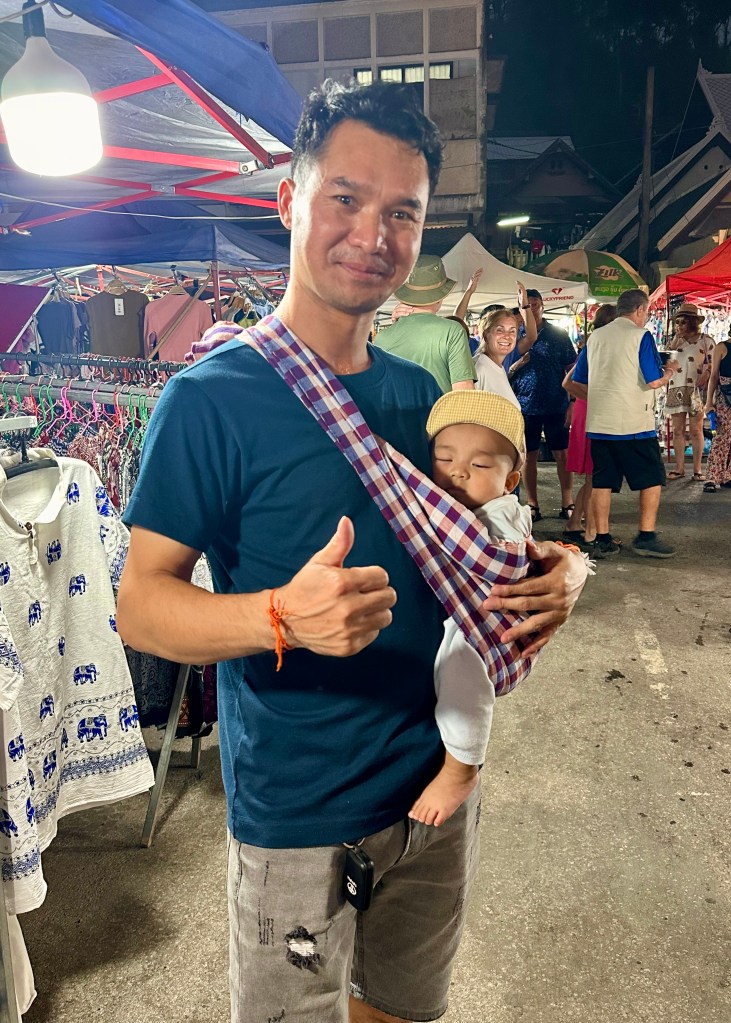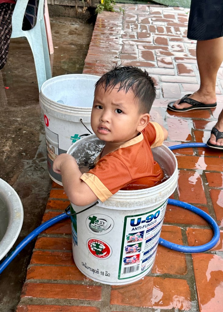 We visited the National Museum, originally a home to two kings, and it was jam-packed with tourists, primarily Chinese ones, due to the easy travel from China to Luang Prabang, then we headed to several buddhist temples – “wats” – before I was dropped for lunch at a local restaurant, where I could eat outdoors overlooking the Mekong River and have a beer. Rather than riding back to my hotel in a tuk-tuk, I decided to walk the c. 2 miles, passing lots of celebrants along the way, getting fully drenched with a smile on my face.