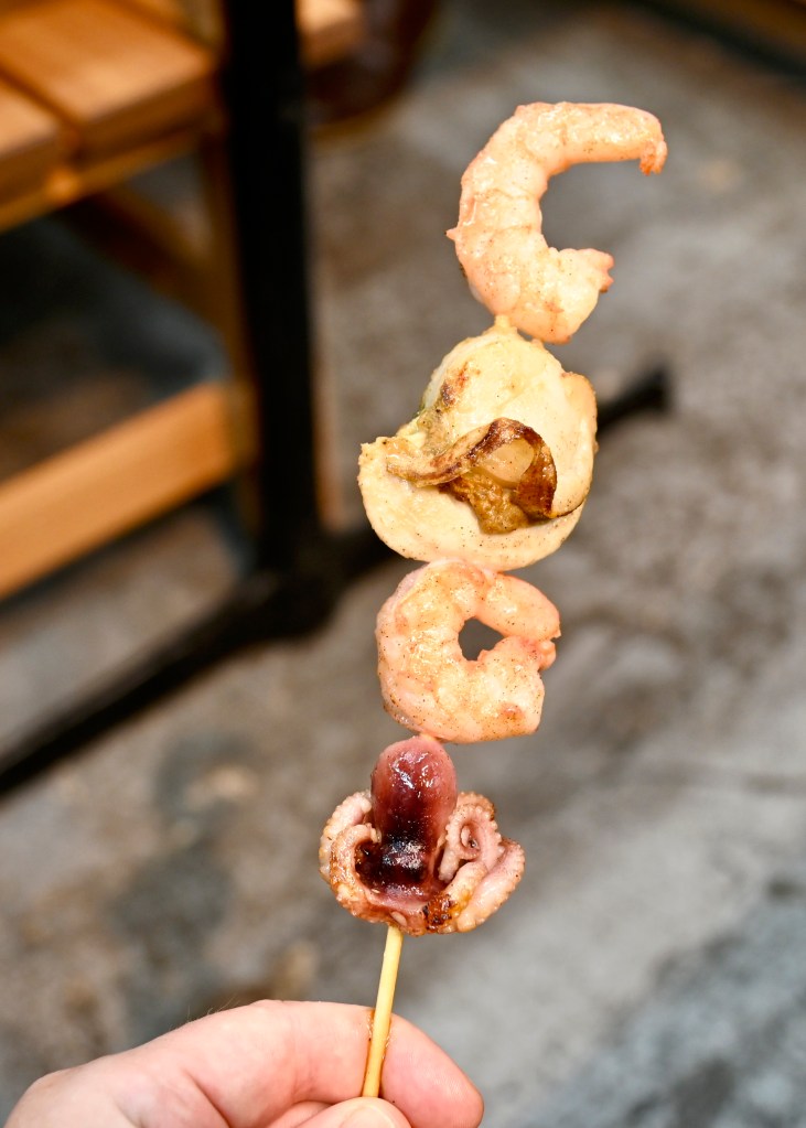 We tasted an omelette on a stick, a chicken skewer, grilled fish on a stick (shrimp, scallop, octopus, fish), sashimi (three different types of tuna), and the freshest of pineapple chunks. All while negotiating around narrow streets, hundreds of people, and delivery trucks and motorbikes. When we arrived at about 7:30 a.m. it wasn’t terribly crowded, but by the time we finished up at around 9:30 the place was an exciting sea of people and sights and sounds.