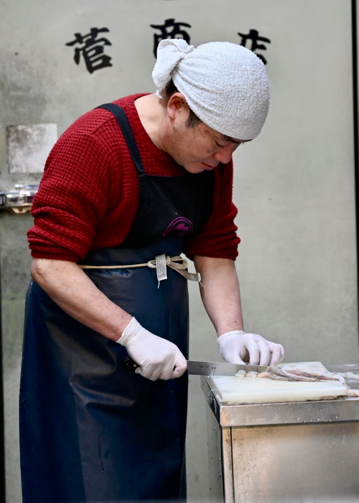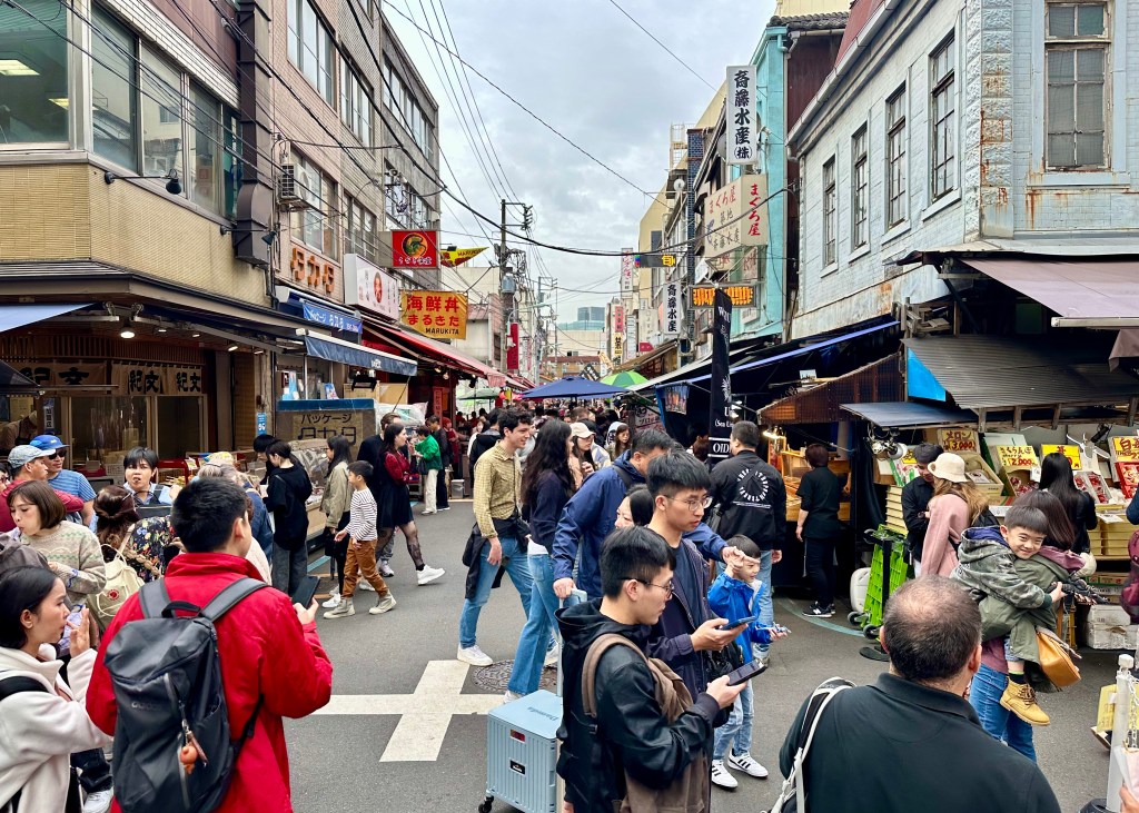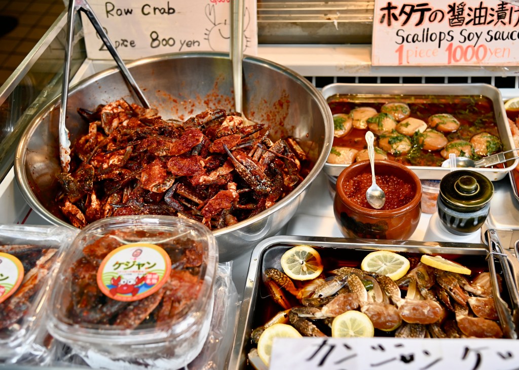 And what a fun and wild experience it was. Shops galore – food and souvenirs in a wide wide range – raw fish, cooked fish, dried fish, fruits, vegetables, meats, sweets, coffee, tea, spices, egg dishes, knives, chopsticks, ceramics, t-shirts, tote bags, and more and more.