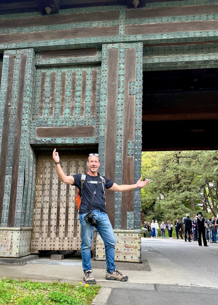 After lunch it was time to head to the Imperial Palace for a scheduled tour; this is the primary residence of the emperor and is located in Chiyoda, across town from where I was. I’d booked ahead of time, just to be sure I’d have a spot, and expected a small group tour. Nope, didn’t happen that way. I checked-in with a security guard who had my name on a list and then entered a waiting hall. Hundreds – I mean hundreds of people were seated inside; announcements were made in Japanese, Chinese, French, Spanish, and English, and finally we were told to gather outside by language. The English and Chinese groups appeared to be the two largest (maybe 200-300 people each). Our tour guide had a microphone and a small speaker strapped to her waist; if you didn’t stay close to her, you couldn’t hear a thing. We didn’t get to go inside any buildings, or even see the outside of the residence, but we did get to see the outsides of ceremonial buildings and reconstructed forts, and gardens at a distance.