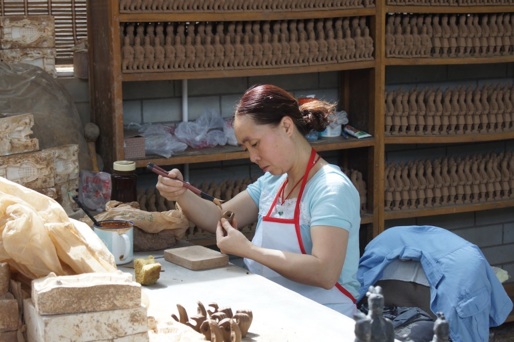 “What’s overwhelming is many-fold – the scale for one: while we only saw 1,000 or so soldiers – and that sight alone was mind-blowing – scientists think that there are anywhere from 6,000 – 8,000 warriors overall, not including the horses and chariots. Then the fact that all the faces are different – that they may be images of real people – that someone made the choice to make them that way and not go the easy way out and make them all the same. That the whole complex had to be planned, designed, architected, engineered, built, with people in all those roles, and that everything needed to make them also had to be built – kilns, pits to make the terra cotta, living quarters, kitchens. That huge numbers of workers had made each and every soldier and put them in place, that those workers were probably treated terribly (mass graves have been found that are suspected to be worker graves). And, as I was taking pictures, I had to remind myself to step back away from the camera and periodically take the whole view in. I spent my hour walking around the whole viewing platform, as I think most people do.”