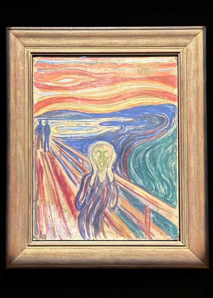 And, of course, the Museum has The Scream. In fact, it has three versions of it – a print, a drawing, and a painting, as Munch tended to produce multiple versions of many of his works. Each version of The Scream that the museum has are on display, but only for thirty minutes at a time each, as a way to preserve them. They have their own gallery, and each version is behind a set of automatic doors that open-and-close as necessary every thirty minutes.