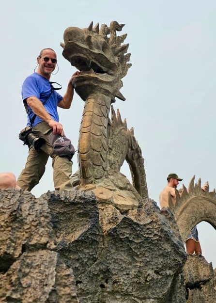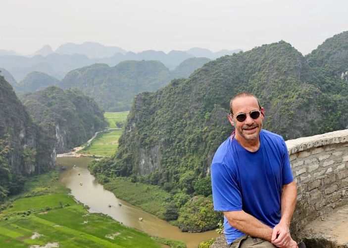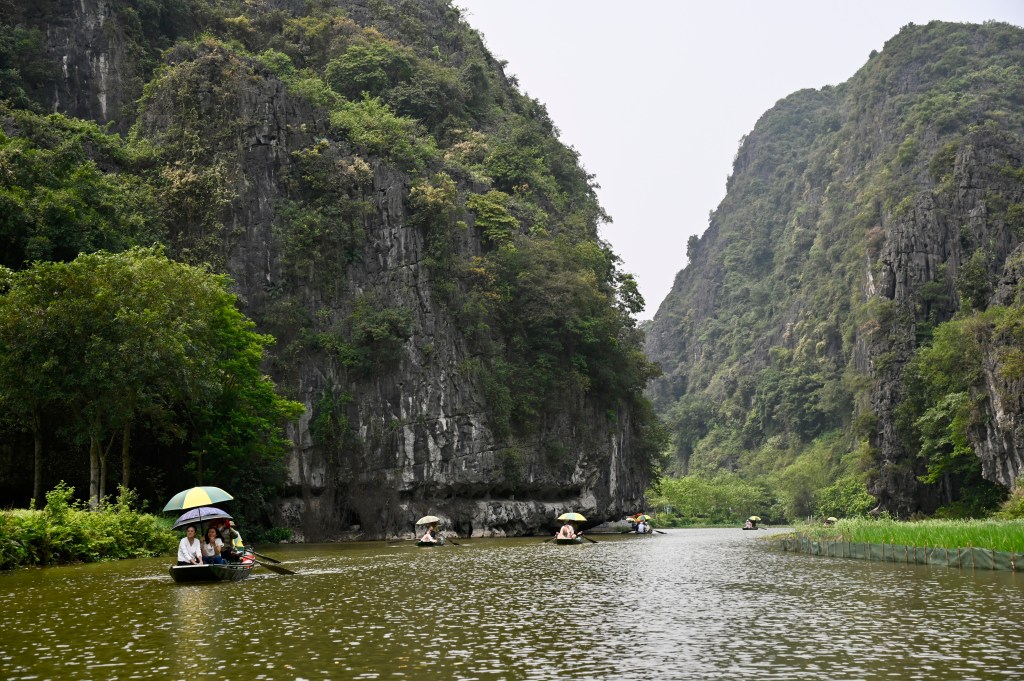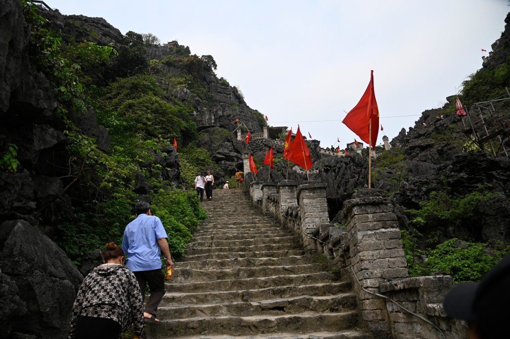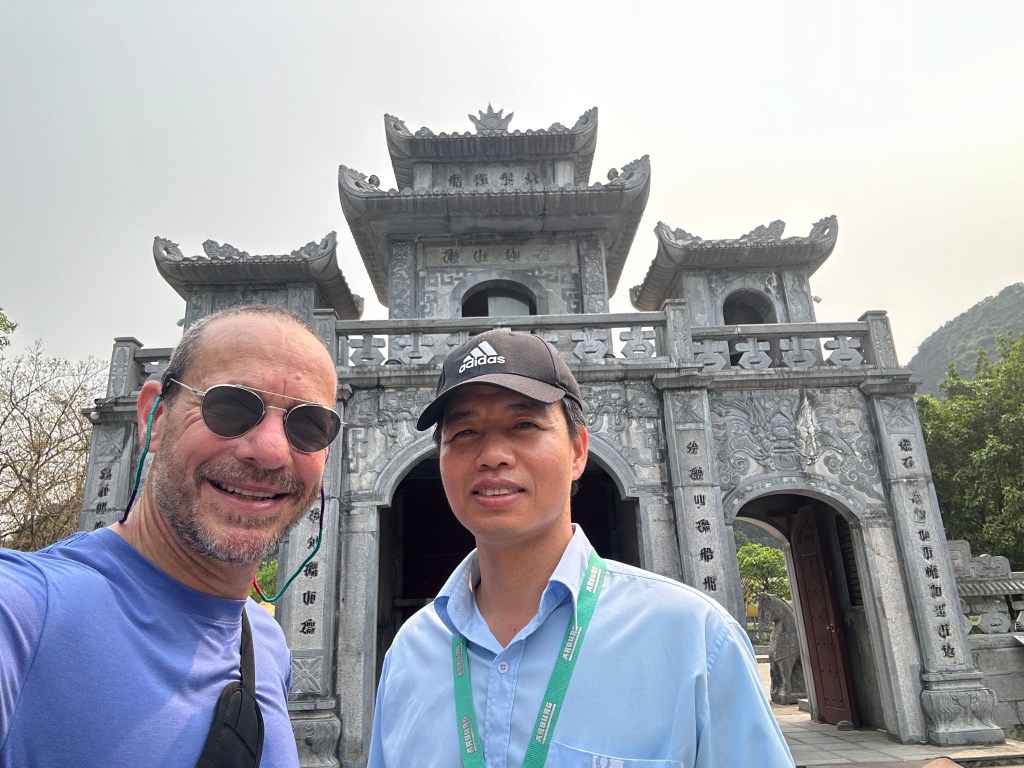 But I digress – I needed to first get out of the city and into the country, so I headed out with a guide to the area known as Ninh Binh (it is both a province and a city), about a 2-hour drive southeast the city, situated in the Red River Delta, and a UNESCO World Heritage Site. It is probably most well known for the huge limestone jungle-covered mountains (called “karsts”) that rise like towers over the rice fields above the (now-enclosed) river that was used as one of the locations where the movie “Kong: Skull Island” was filmed. But more importantly, Ninh Binh was an ancient capital, in the 10th and 11th centuries, offering protection from the Chinese mongols who tried multiple times to invade Vietnam.