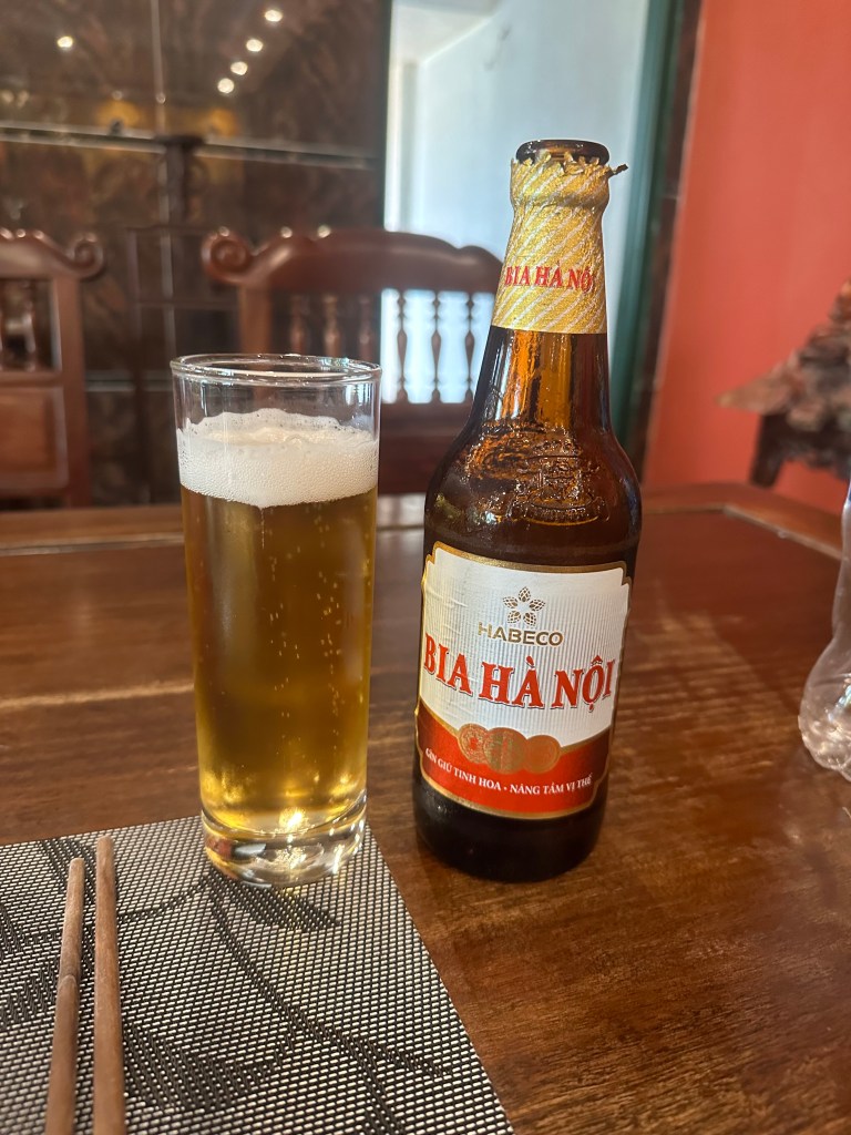 That was much needed after a morning spent climbing the 500 (!) uneven steps – in 90 degree heat with high humidity – to the top of Hang Mua, giving a spectacular view of the valleys below. I was a sweaty mess by the time I got to the top – which was worth it – and even moreso when I made it back down. That meant I got to reward myself with my first local beer of the trip along with a seven-course meal of local specialties (but with insufficient chili heat to my taste).